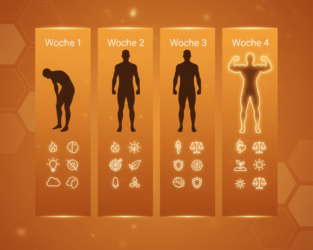 Men notice testosterone/libido surge in 2-3 weeks; women feel menopause relief in 4 weeks. Full transformation: 2-3 months.